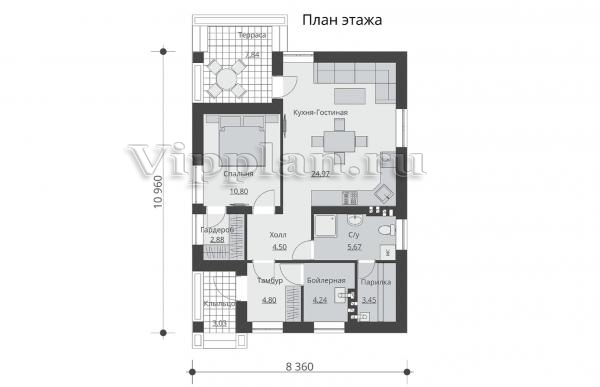 | Размеры дома: | 8.36м×10.96м |