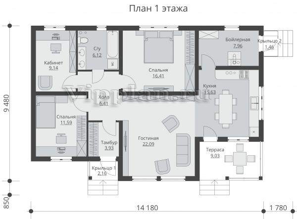 | Размеры дома: | 9.48м×14.18м |